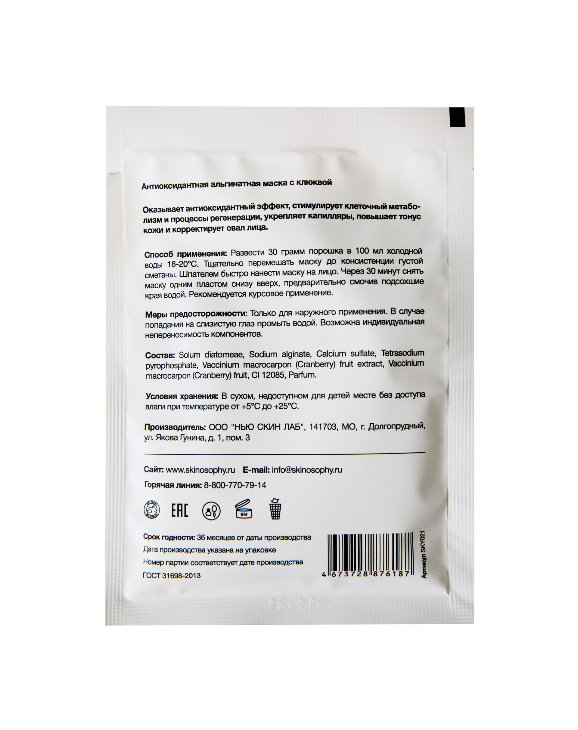 Антиоксидантная альгинатная маска с клюквой