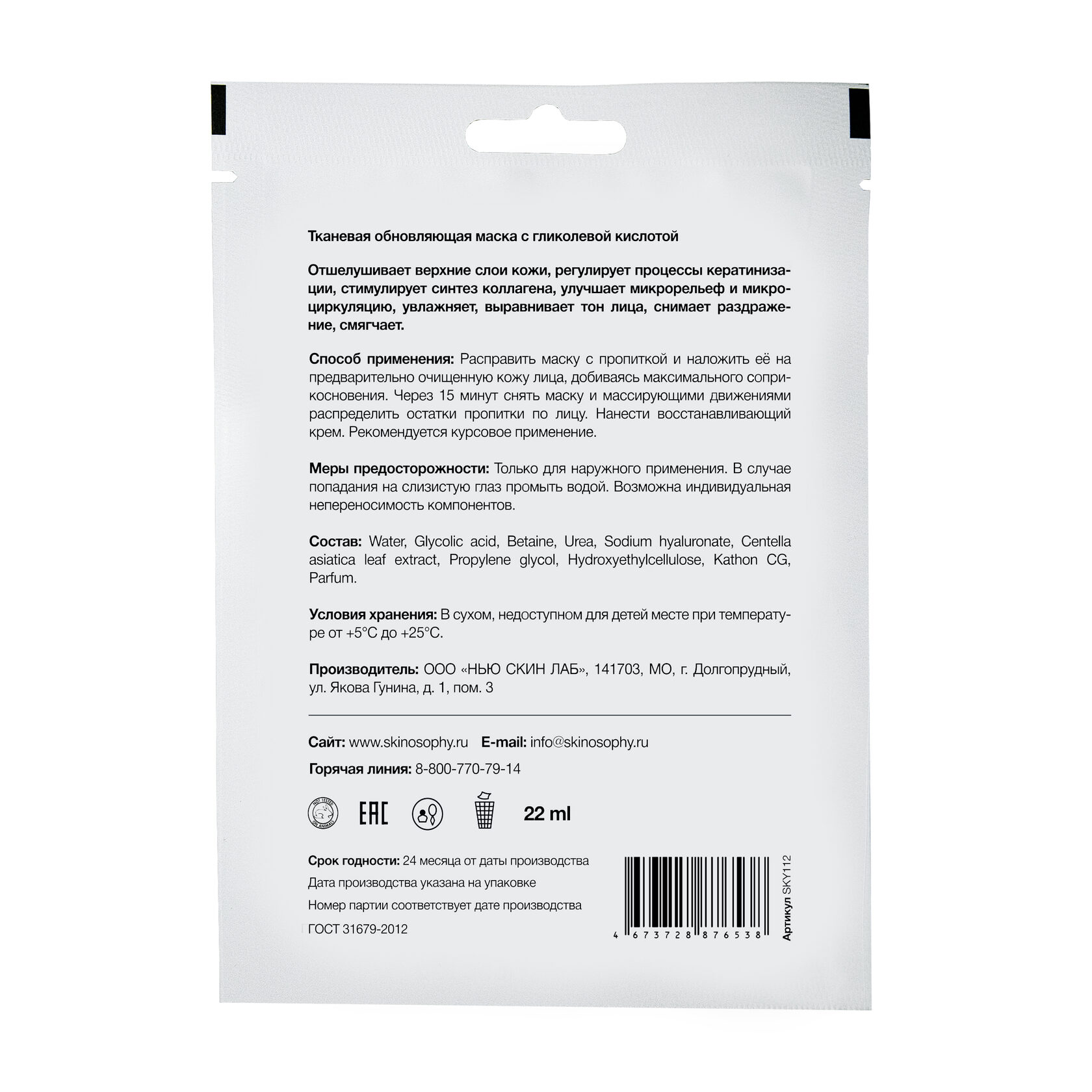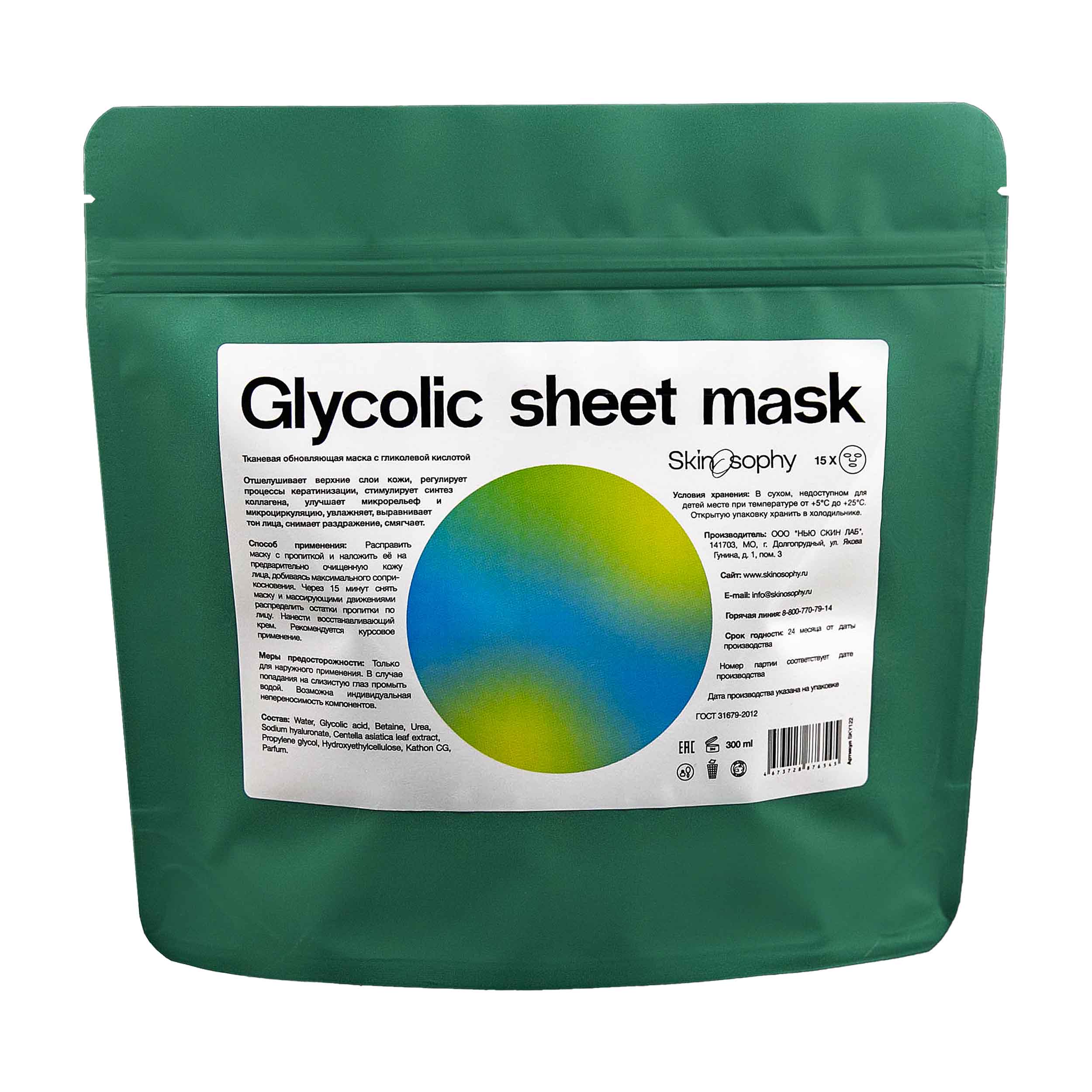 Тканевая обновляющая маска с гликолевой кислотой 2%