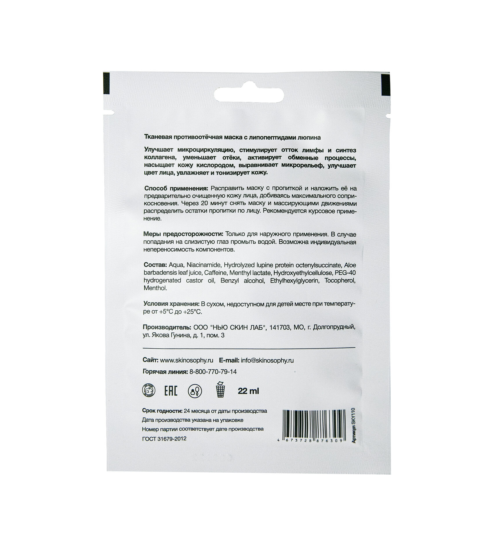 Ниацинамид, липопептид люпина, сок алоэ вера, кофеин, ментиллактат, токоферол, ментол.