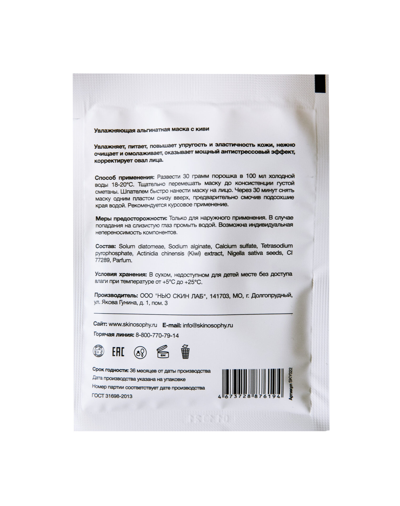 Увлажняющая альгинатная маска с киви